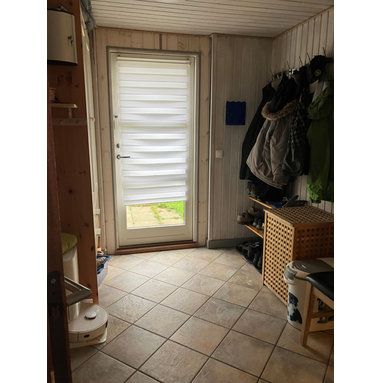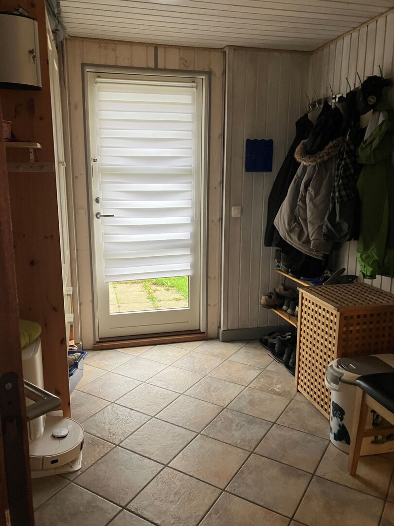 Im Flur befindet sich ein Saugroboter mit Wischfunktion, der für tägliche Sauberkeit sorgen kann.