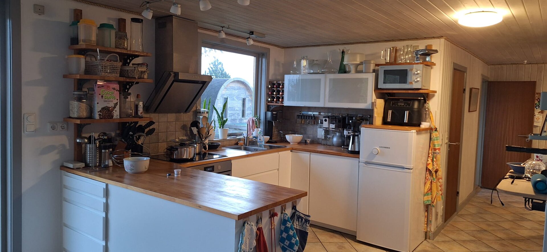 Die voll ausgestattete Küche ist zusätzlich mit einem Geschirrspüler, einer Mikrowelle und einem Airfryer ausgestattet.